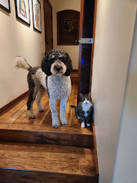 Justin has been taking care of our doodles and home for about 3 years. He takes his job seriously. (Very worthy)